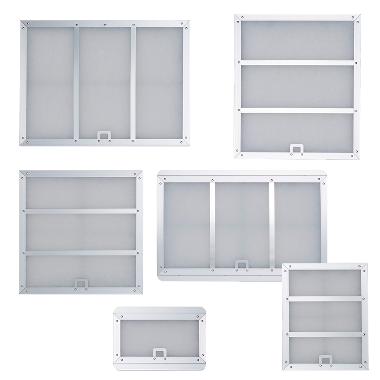 様々なレンジフード取り付け枠に対応しています。お使いのフィルター枠のサイズをお知らせ頂ければそのサイズに合わせる事も出来ます。また、弊社でご用意している専用フィルター枠(有料)もございます。